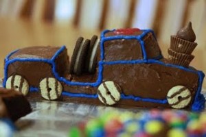 I used my son’s favorite treats to “load” the cars. I tinted vanilla icing to make the cars colorful and for the piping accents.