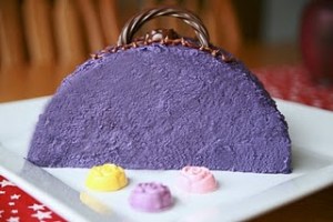 My daughter turned 6 recently and ordered up a purple purse cake. Her birthday cake of choice is chocolate. She wanted peanut butter icing but only if it could be purple. So I went to work.