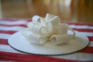 I also am working on learning how to use fondant and gum paste a little better. My first attempt at a bow wasn’t too bad…