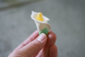Next was the calla lily. The stamen is gum paste tinted yellow and rolled in yellow sugar crystals.