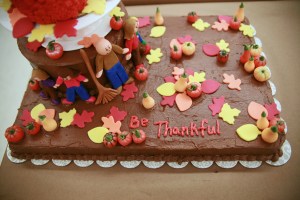 I ended my decorating 90 minutes with writing “Be Thankful” on the cake because that’s how I feel. I am very thankful for my family!