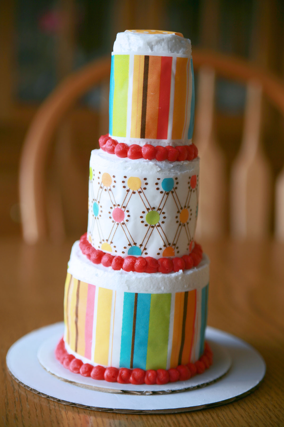 After I made the cake, I was talking to my husband about it. We both think it would be a cute cake to duplicate a wedding cake for an anniversary or for a fabulous birthday party with only a few guests! For whatever reason, this is a fun, fancy cake!
