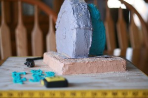 I bought a board at Lowe’s and Jeremiah cut it to the dimensions I needed to put a cake on it. I actually may use wood boards for all my big cakes from now on. It was so sturdy that I didn’t have to worry about all the weight from all this cake falling through the middle! Jeremiah used the staple gun to attach the tape measure for the border around the board. (Seriously, you really didn’t want me to be using the staple gun :-)!