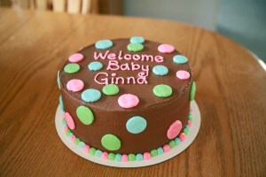 Last weekend I had an order for a baby shower cake.  The lady who ordered the cake had an idea in her head with pink, brown, green, and blue colors but wanted a chocolate cake with chocolate buttercream.