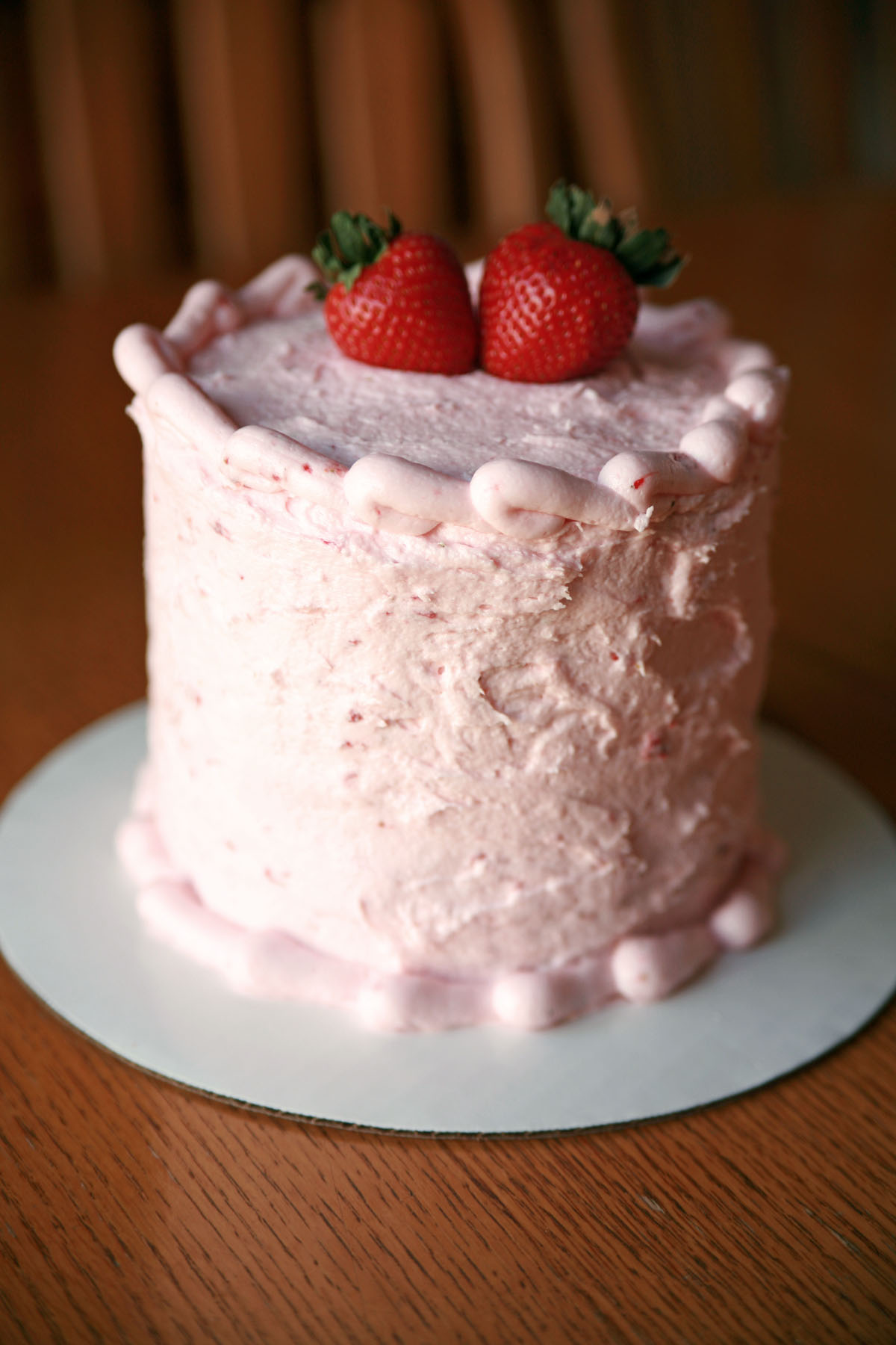Since there are only five here, I made a six-inch round and torted the layers so it was a tall cake but still small to not waste.
