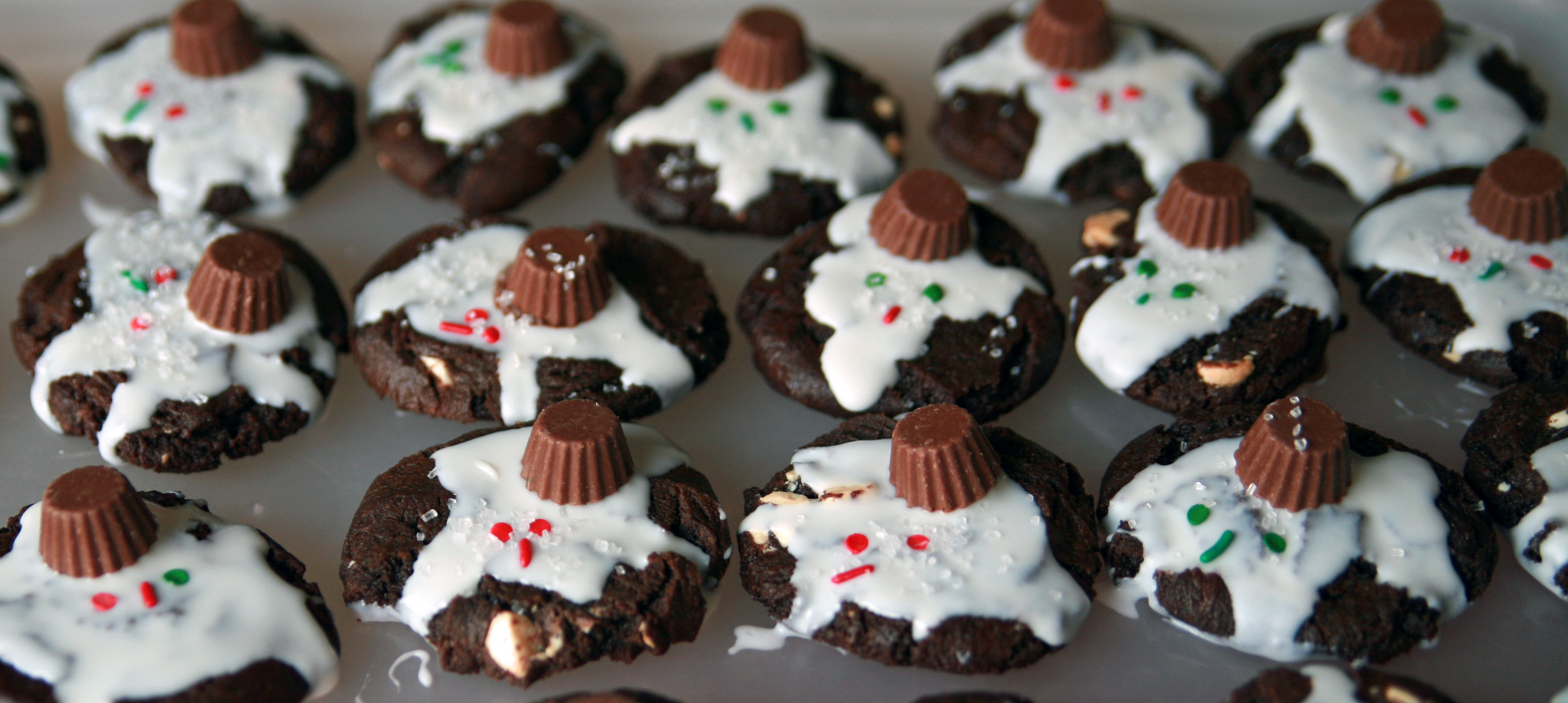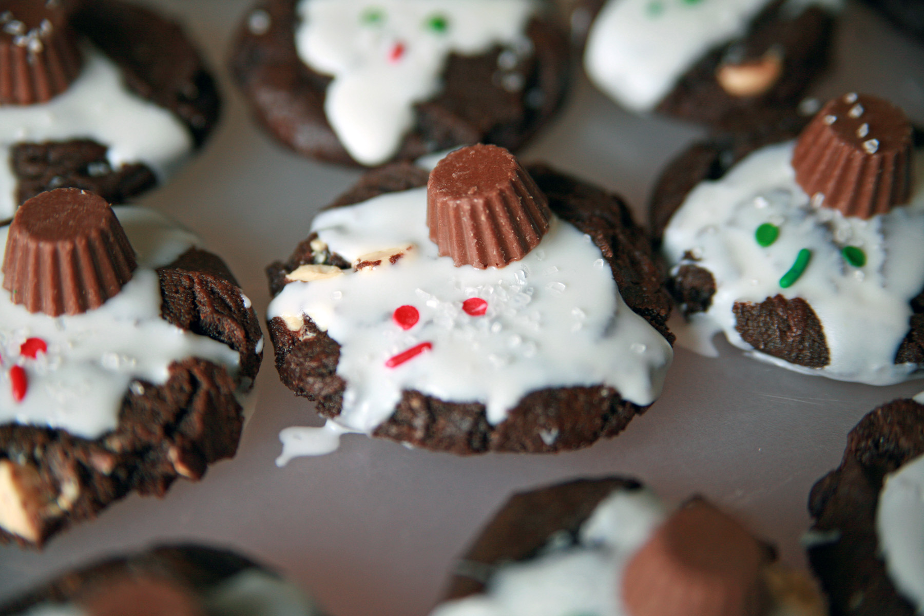 December: There were lots of goodies made. Peppermint bark, peanut butter fudge, cornflake wreaths, lots of cookies. I attempted a cookie I saw on Pinterest. Chocolate Melted Snowman.